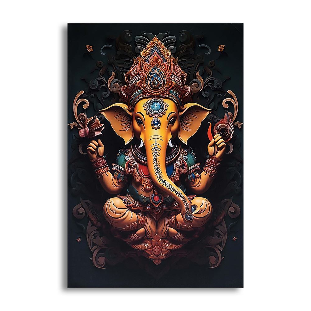 Overall, Ganesh Ji is a devotional representation rooted in traditional Hindu art while embracing a contemporary visual style. It portrays Lord Ganesh as the embodiment of wisdom and auspicious beginnings, reminding the viewer that with faith, balance, and inner clarity, every path can be made clear.